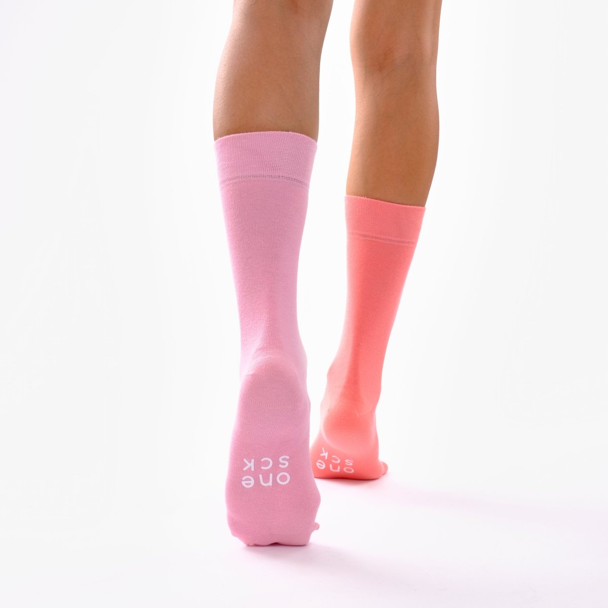 Coral Pink & Candy Pink Odd Socks – Mismatched Cotton Crew Socks - Odd Socks