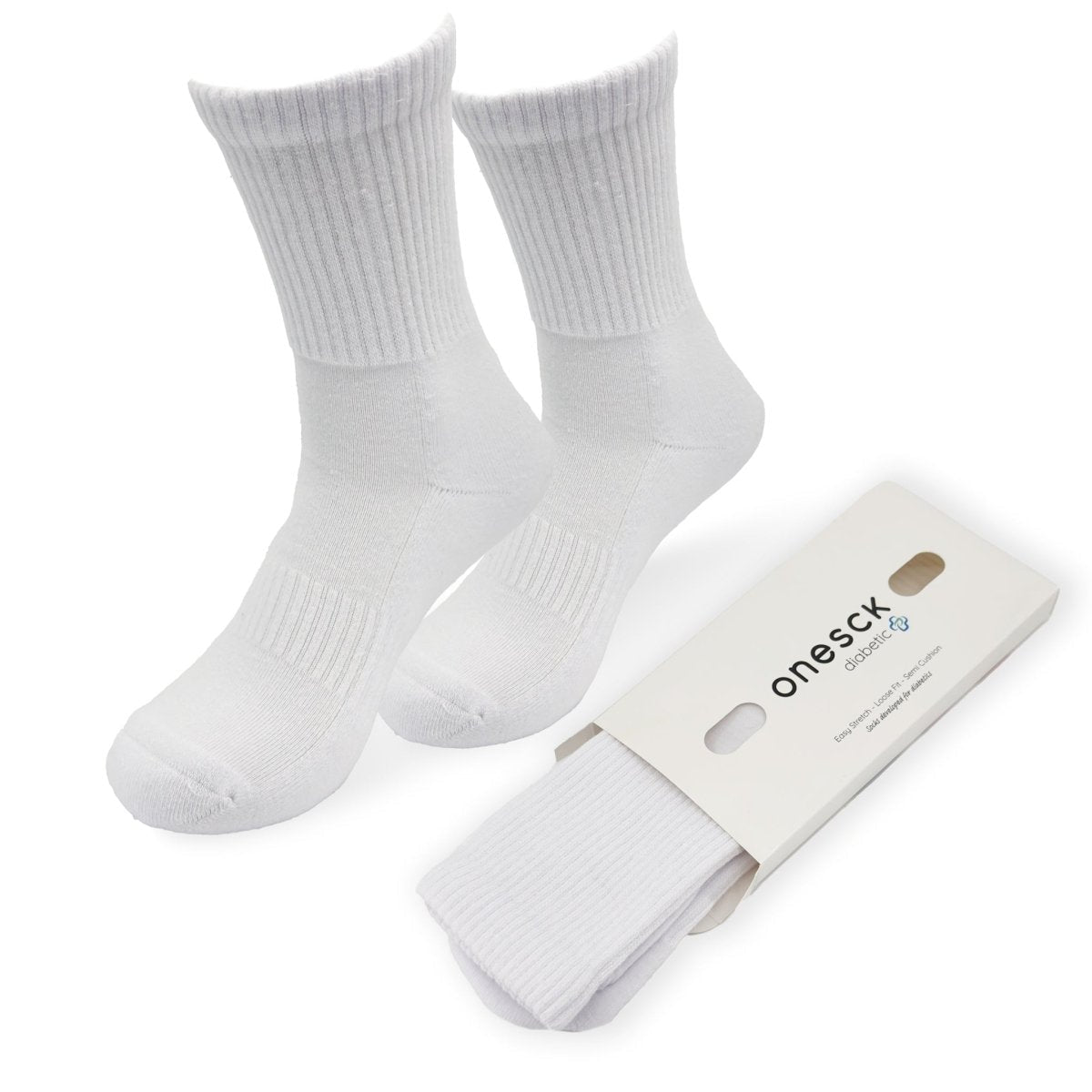 Our Off White Ribbed Diabetic Socks deliver timeless comfort with a crisp look. Crafted from breathable cotton and designed with a non-binding top and seamless toe, they’re ideal for sensitive feet and daily wear.